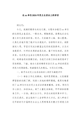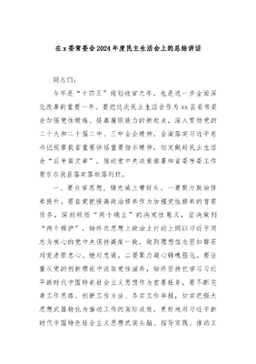 在x委常委会2024年度民主生活会上的总结讲话.docx