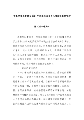 市直单位主要领导2024年民主生活会个人对照检查发言材料(四个带头).docx