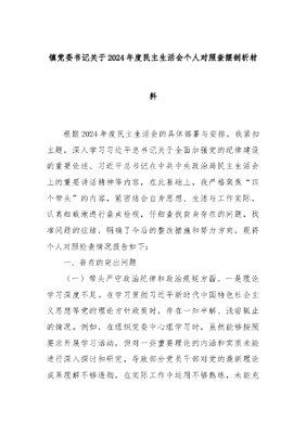 镇党委书记关于2024年度民主生活会个人对照查摆剖析材料.docx
