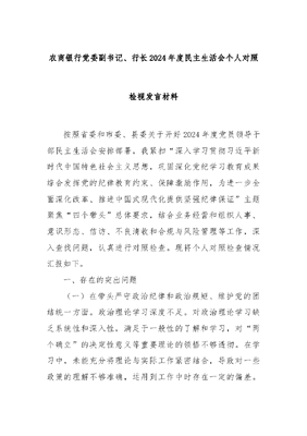 农商银行党委副书记、行长2024年度民主生活会个人对照检视发言材料.docx