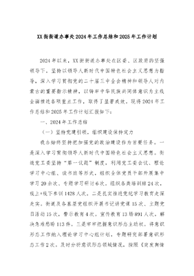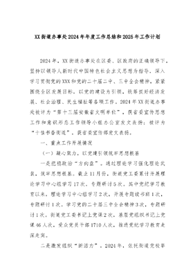 XX街道办事处2024年年度工作总结和2025年工作计划.docx