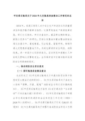 市交通运输局关于2024年火灾隐患排查整治工作情况的总结.docx