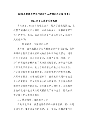 (4篇)2024年教师年度工作总结个人考核材料汇编.docx