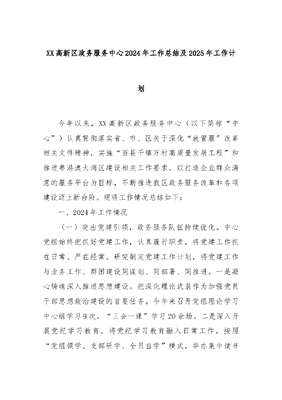 XX高新区政务服务中心2024年工作总结及2025年工作计划.docx
