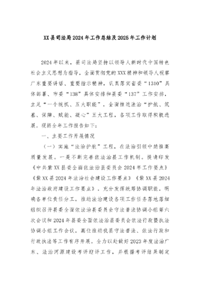 XX县司法局2024年工作总结及2025年工作计划.docx