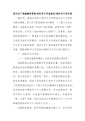 县文化广电旅游体育局2024年工作总结及2025年工作计划.docx