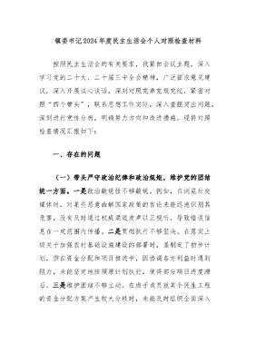 镇委书记2024年度民主生活会个人对照检查材料.docx