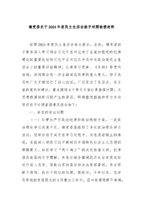 镇党委关于2024年度民主生活会班子对照检视材料.docx