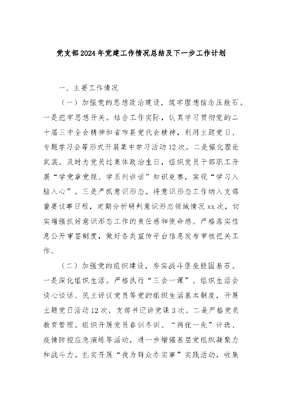 党支部2024年党建工作情况总结及下一步工作计划.docx