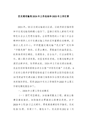 区交通运输局2024年工作总结和2025年工作打算.docx