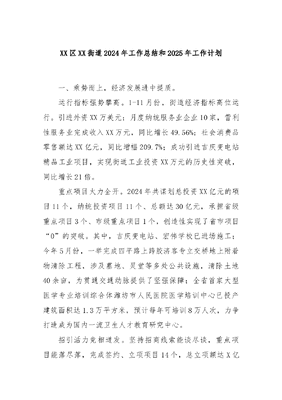 XX区XX街道2024年工作总结和2025年工作计划.docx