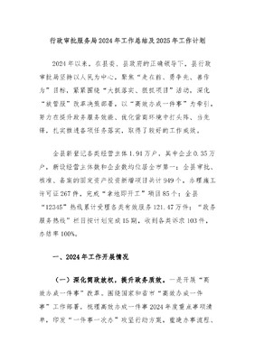 行政审批服务局2024年工作总结及2025年工作计划.docx