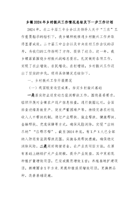 乡镇2024年乡村振兴工作情况总结及下一步工作计划.docx