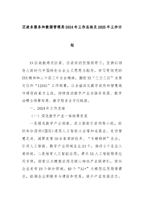 区政务服务和数据管理局2024年工作总结及2025年工作计划.docx