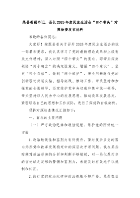 某县委副书记、县长2025年度民主生活会“四个带头”对照检查发言材料.docx