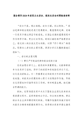 国企领导2024年度民主生活会、组织生活会对照检查材料.docx