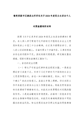 镇党委副书记兼派出所所长关于2024年度民主生活会个人对照查摆剖析材料.docx