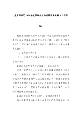党支部书记2024年度组织生活会对照检查材料(四个带头).docx
