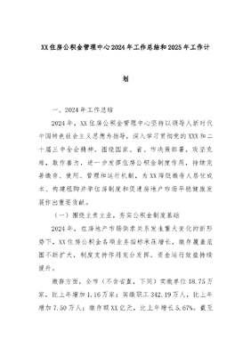 XX住房公积金管理中心2024年工作总结和2025年工作计划.docx