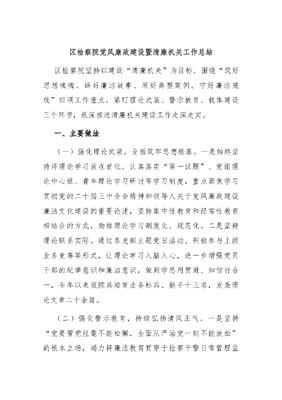 区检察院党风廉政建设暨清廉机关工作总结.docx