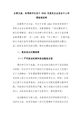 分管文旅、体育副市长关于 2024 年度民主生活会个人对照检视材料.docx