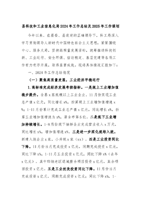 县科技和工业信息化局2024年工作总结及2025年工作谋划.docx