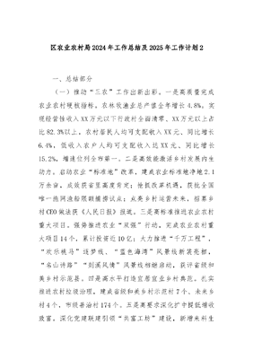 区农业农村局2024年工作总结及2025年工作计划2.docx
