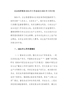 区应急管理局2024年工作总结及2025年工作计划.docx