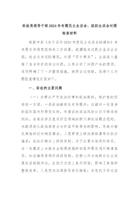 科技局领导干部2024年专题民主生活会、组织生活会对照检查材料.docx