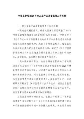 市场监管局2024年度工业产品质量监管工作总结.docx