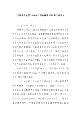 XX经济开发区2024年工作总结及2025年工作计划.docx