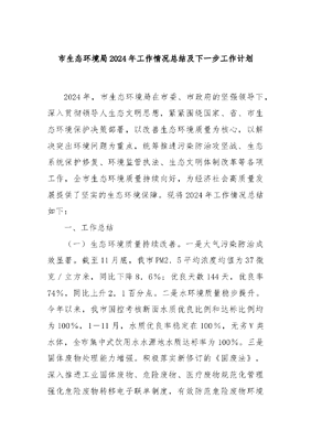 市生态环境局2024年工作情况总结及下一步工作计划.docx