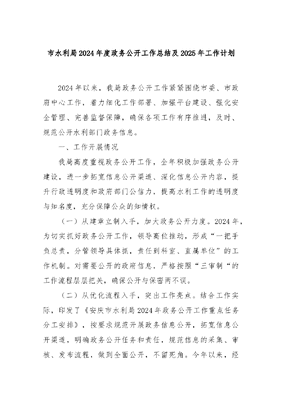 市水利局2024年度政务公开工作总结及2025年工作计划.docx