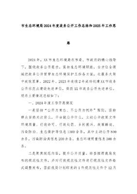 市生态环境局2024年度政务公开工作总结和2025年工作思路.docx