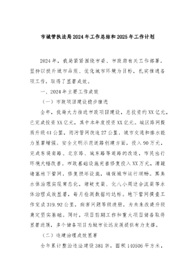 市城管执法局2024年工作总结和2025年工作计划.docx