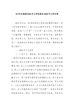 XX市XX街道2024年工作总结及2025年工作计划.docx