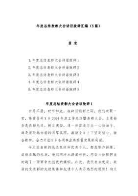 (5篇)年度总结表彰大会讲话致辞汇编.docx