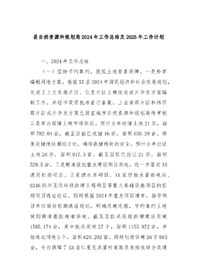 县自然资源和规划局2024年工作总结及2025年工作计划.docx