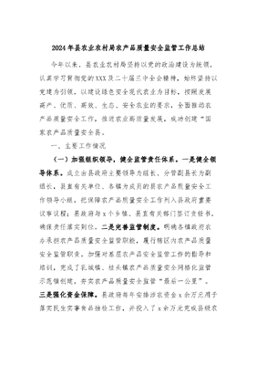 2024年县农业农村局农产品质量安全监管工作总结.docx