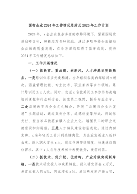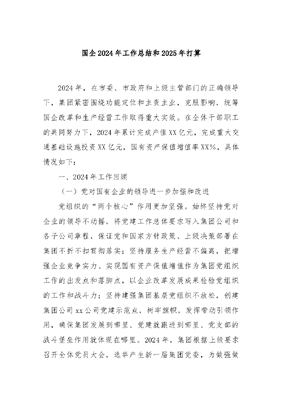 国有企业2024年工作情况总结及2025年工作计划.docx