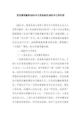 区交通运输局2024年工作总结及2025年工作计划.docx