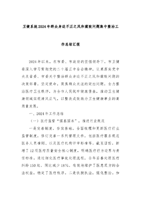 卫健系统2024年群众身边不正之风和腐败问题集中整治工作总结汇报.docx