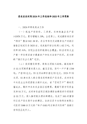 县农业农村局2024年工作总结和2025年工作思路.docx