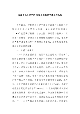 市政府办公室党组2024年抓基层党建工作总结.docx
