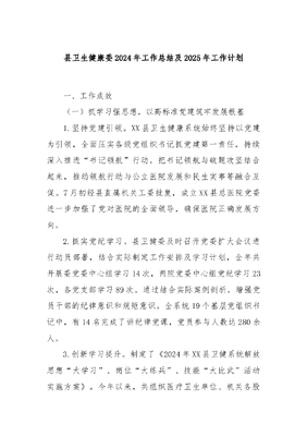 县卫生健康委2024年工作总结及2025年工作计划.docx