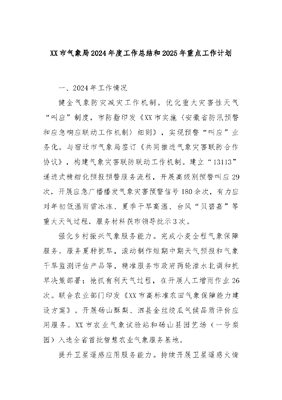 XX市气象局2024年度工作总结和2025年重点工作计划.docx