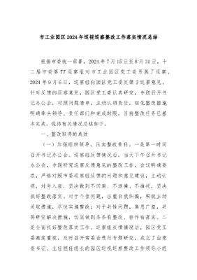 市工业园区2024年巡视巡察整改工作落实情况总结.docx