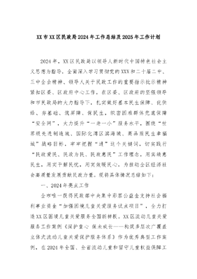 XX市XX区民政局2024年工作总结及2025年工作计划.docx