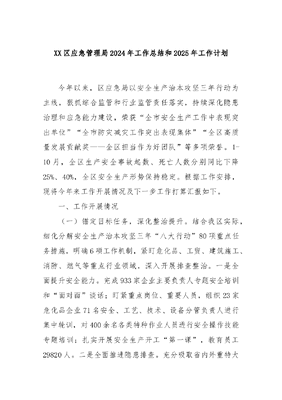 XX区应急管理局2024年工作总结和2025年工作计划.docx