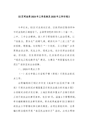 XX区司法局2024年工作总结及2025年工作计划2.docx